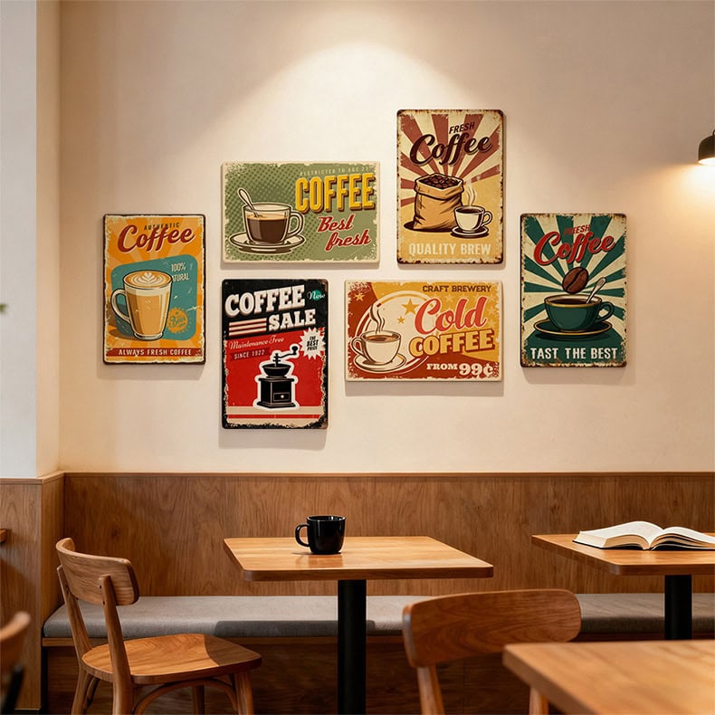 Les textures vieillies, les bords patinés et les effets de "rouille" que vous voyez sur nos modèles sont le fruit d'un travail graphique minutieux. Veuillez noter que nos plaques ne contiennent pas de véritable rouille ; l'aspect usé est un effet de style imprimé. Cela vous permet de profiter d'un look antique et robuste tout en conservant une surface propre et lisse au toucher.