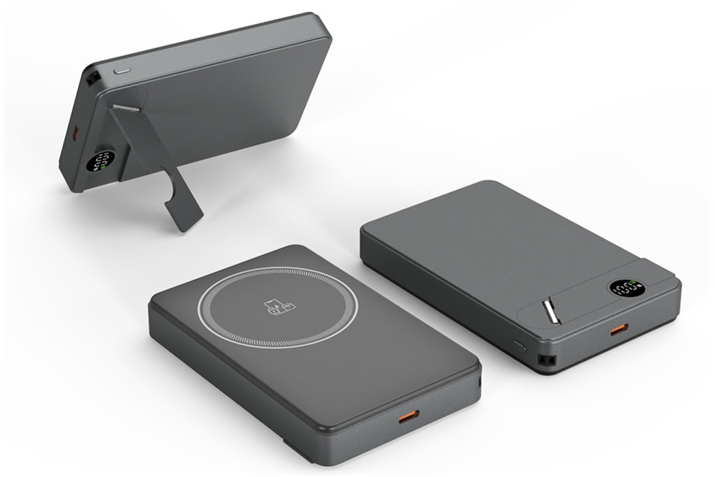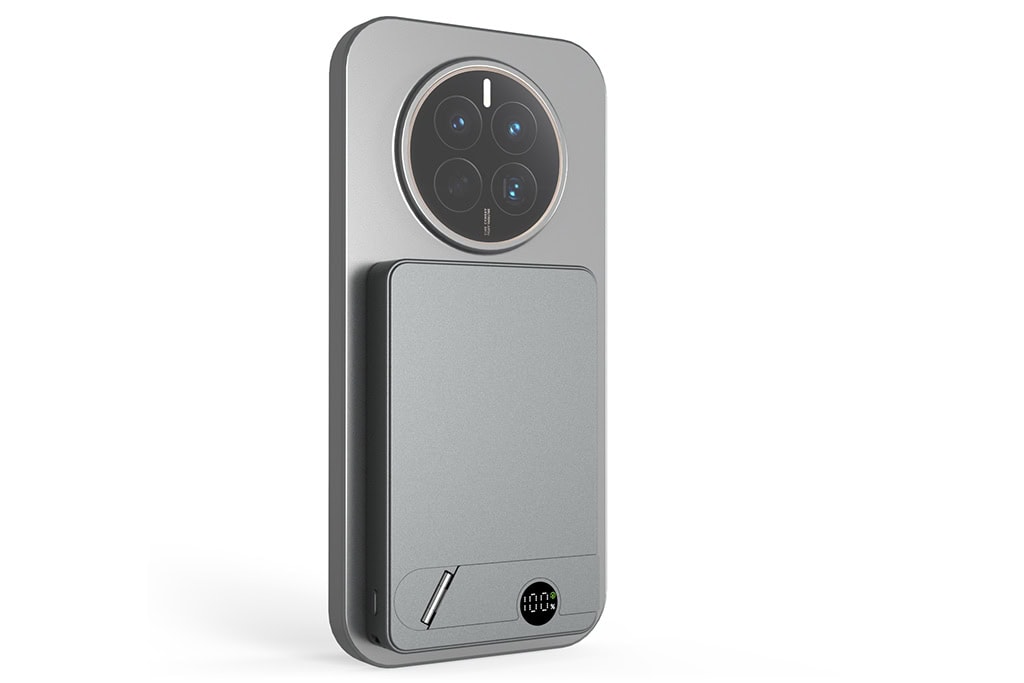 Un support escamotable est intégré dans la batterie. Il se déploie en quelques secondes pour maintenir votre téléphone à la verticale ou à l’horizontale — idéal pour les appels vidéo, le visionnage de contenus ou le travail de bureau.