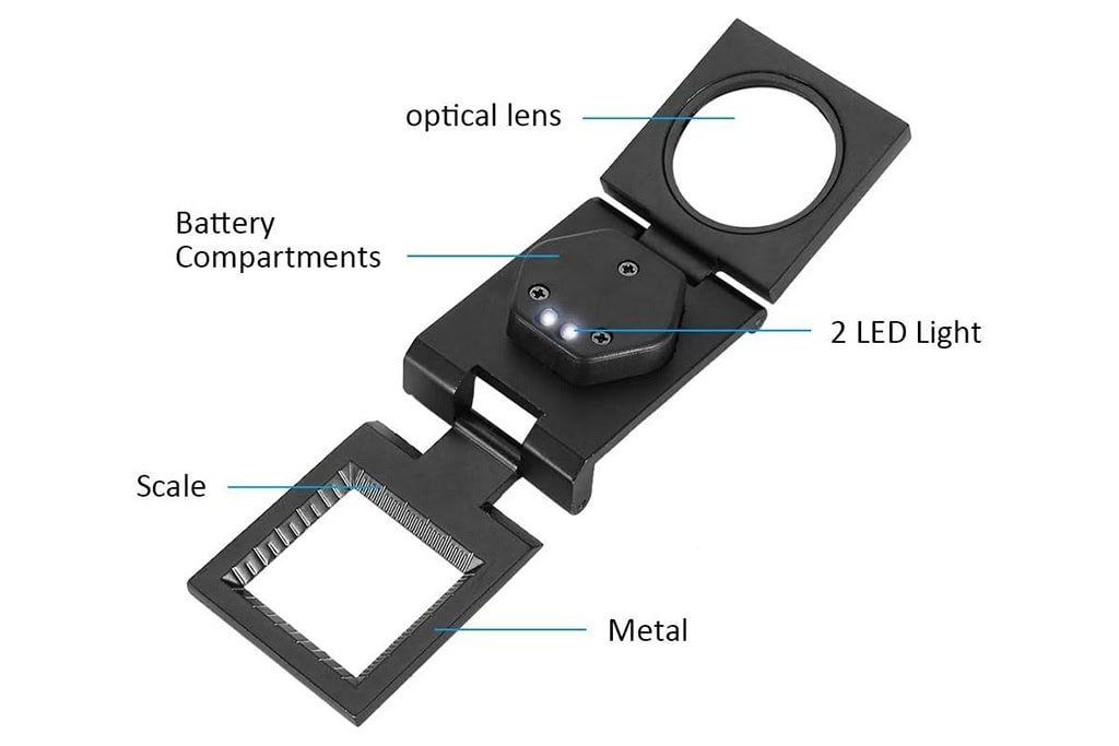 Cette loupe pliante en métal est conçue pour les travaux d’inspection nécessitant une observation précise. Elle est équipée d’une lentille en verre optique, d’un éclairage LED ainsi que d’une échelle de mesure mm/pouces. Elle est largement utilisée dans les secteurs du textile, de l’impression, de l’électronique, de la bijouterie et dans tous les domaines demandant une visualisation détaillée. Son corps métallique noir, résistant et durable, est idéal pour la gravure laser, ce qui en fait un choix privilégié par les entreprises à la recherche de produits promotionnels différents.