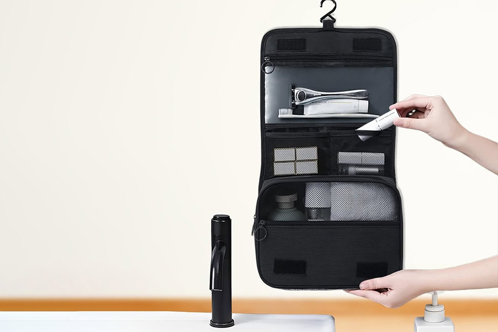 Dotée d’un intérieur bien pensé : une poche en filet, un compartiment à bande élastique, une poche transparente et un espace en tissu respirant pour trier vos articles de toilette avec clarté.